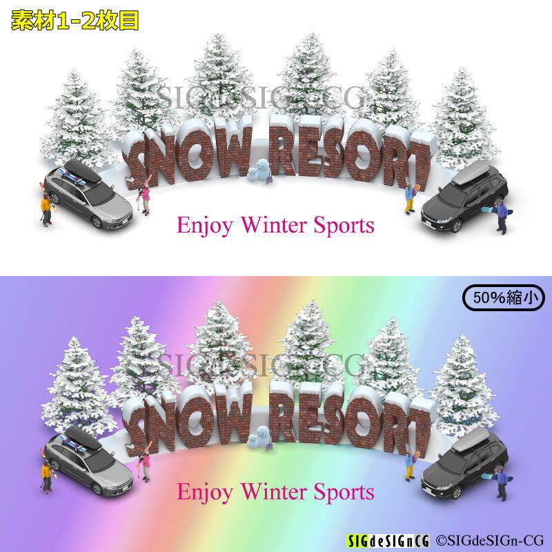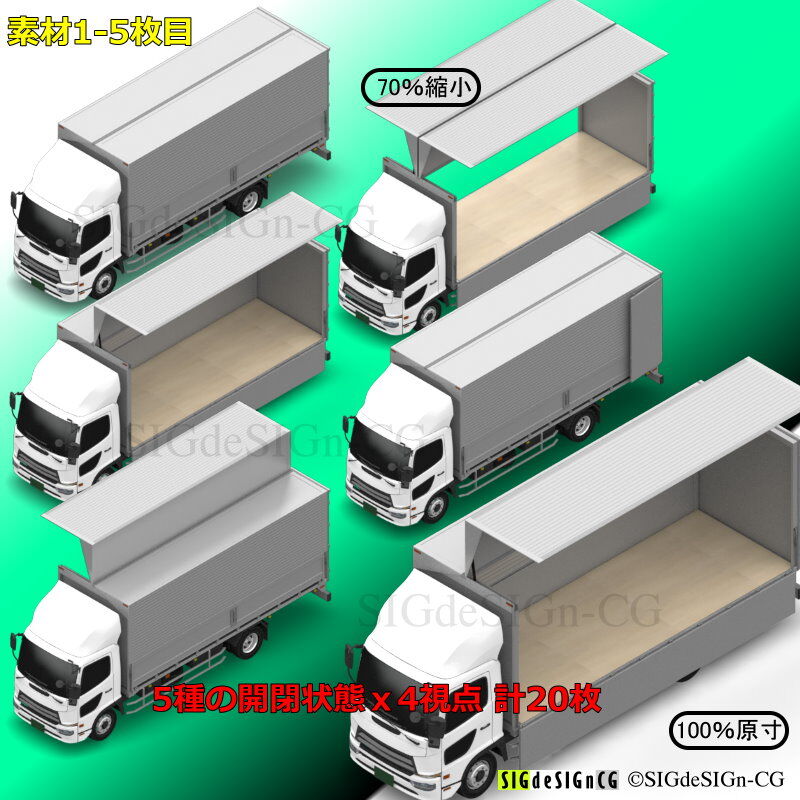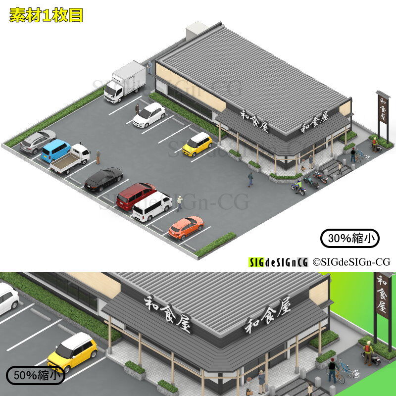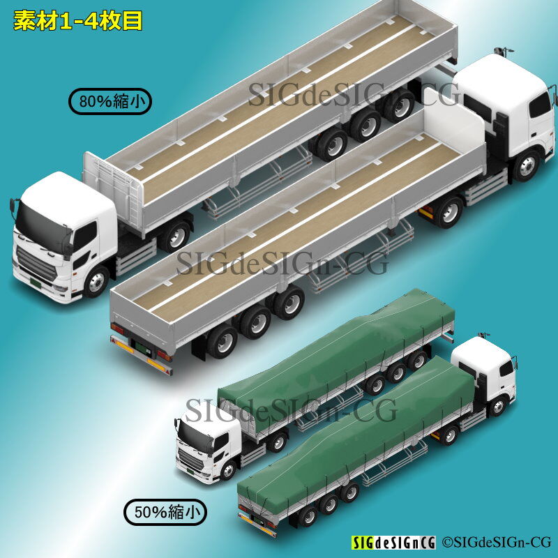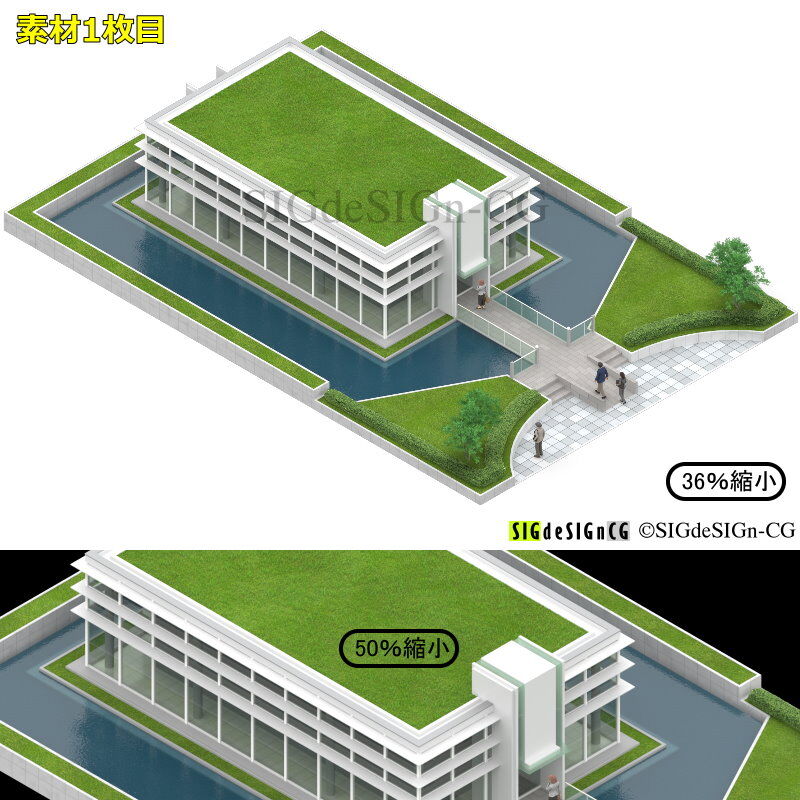 アイソメトリック図法で、背景透過なので、並べて大きな画像にすることができ、